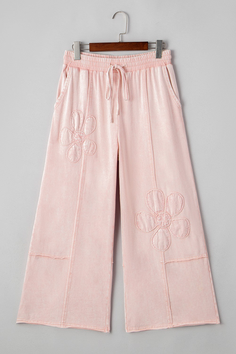 Step into comfort and style with the Everly Wide Leg Pants. Featuring playful flower patches and a mineral washed finish, these pants bring a fresh, unique vibe to your wardrobe. Made from soft terry knit fabric, they promise all-day coziness. The cropped wide leg design adds a trendy, relaxed fit perfect for any casual outing. Crafted from 100% cotton, these pants combine breathability with fun flair. Unbelievably Comfortable and Extremely High Cuteness level.