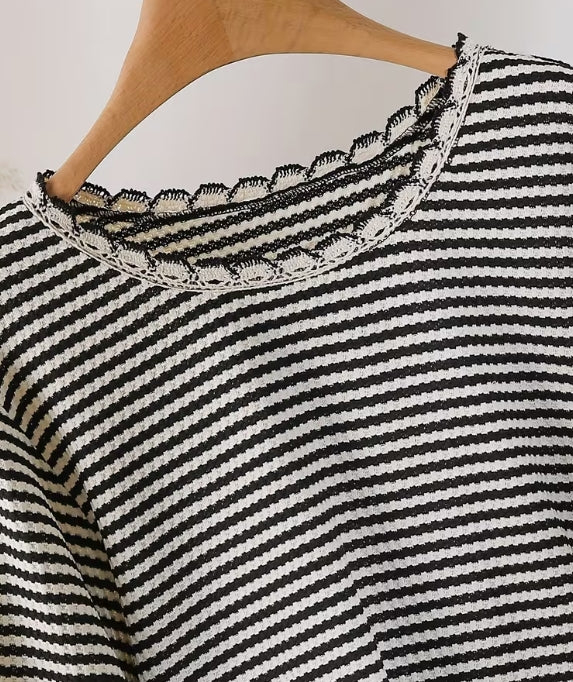 Meet the Blakely Reighn Striped Top—your new go-to for effortless style! This versatile piece features a charming crocheted edging that adds a delicate, handcrafted touch, while the tassel-trimmed hem brings playful personality to every outfit. The classic round neckline and soft, comfortable fabric make it perfect for casual days or dressed-up occasions. Whether you're pairing it with jeans or skirts, this striped beauty transitions seamlessly from relaxed to refined with zero fuss.