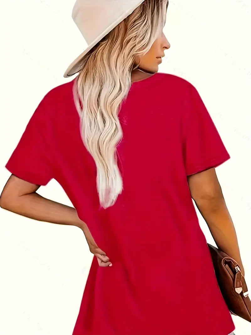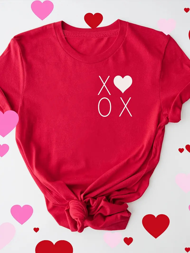 Celebrate love in style with our Valentine's Day T-Shirt for curvy women. Made with a soft and stretchy polyester knit, this fashion-forward shirt features an eye-catching alphabet love print. Perfect for all seasons, it's sure to be your go-to top for any casual occasion.