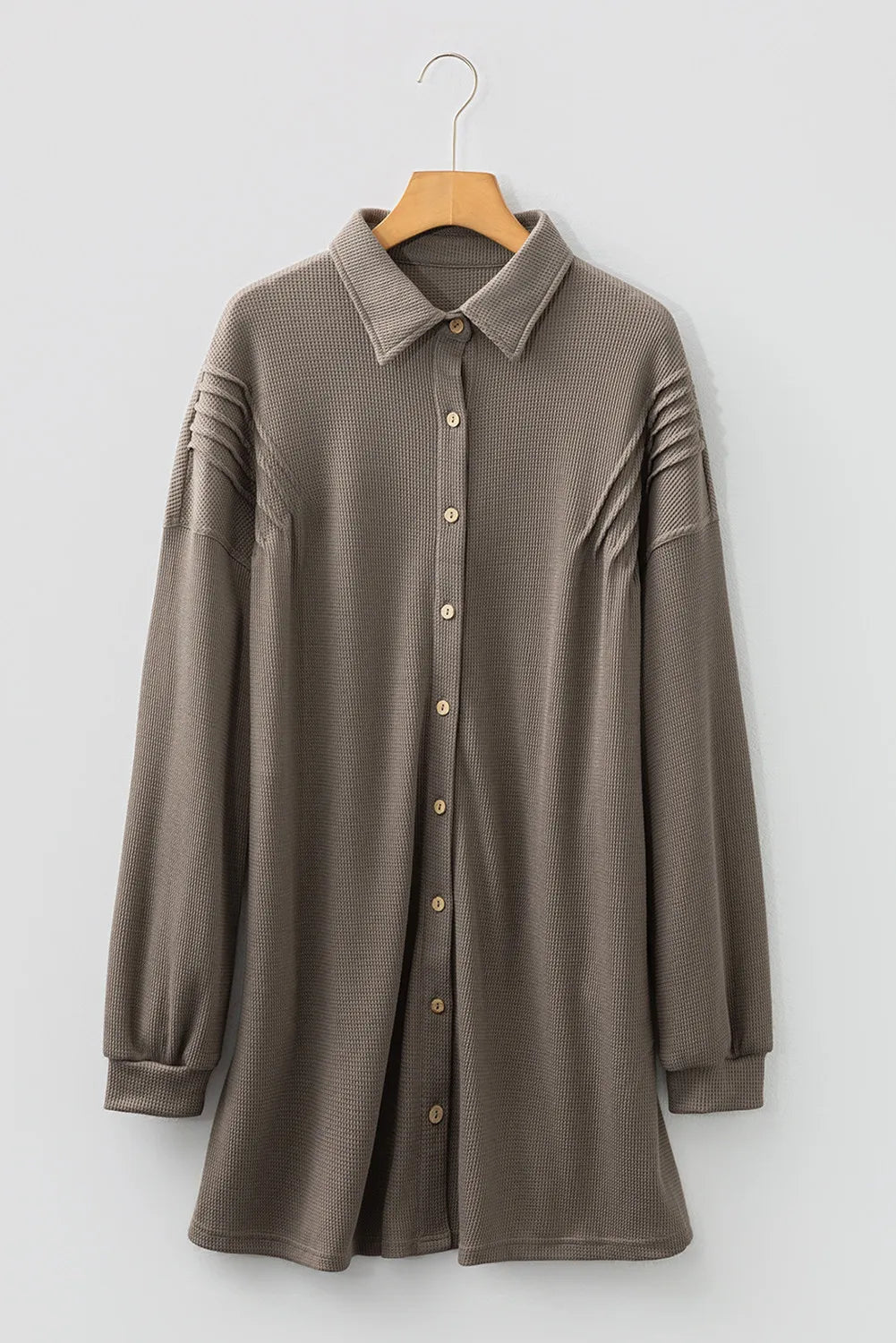 Meet your new wardrobe MVP—the Colton Blake Waffle Knit Tunic Dress in simply stunning taupe. This clever piece works double duty as both a dress and an oversized top, thanks to its flattering tunic length. The textured waffle knit adds just enough visual pizzazz to keep things interesting, while the breathable, stretchy fabric keeps you comfy from morning coffee to evening plans. Pair it with leggings for layered chic or rock it solo for effortless minimalist style. Versatility never looked so good.