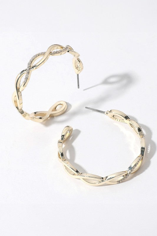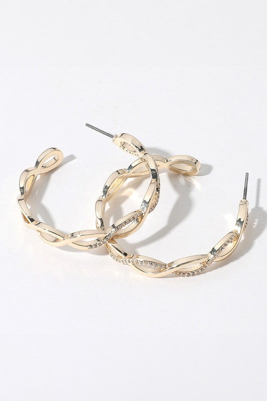 Make a statement with the Darya Twisted Hoop Earrings—where elegance meets edge! These stunning 1.3" hoops feature a mesmerizing twisted design that catches the light beautifully. Crafted with 14K gold plating and sparkling cubic zirconia stones, they deliver luxury vibes without the luxury price tag. Secure post backs keep them comfortably in place all day long. Perfect for elevating your everyday look or turning heads at special occasions. Timeless, versatile, and absolutely gorgeous.