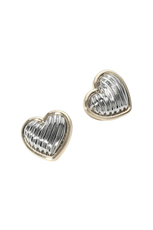 Fall head over heels for the Zadie Earrings—adorable heart-shaped studs that steal the show! These 0.9" beauties feature a textured design that catches the light beautifully, while the 14K gold-plated two-tone finish adds instant sophistication. With their lightweight post backs, they're comfy enough for all-day wear, whether you're heading to the office or a night out. Sweet, stylish, and endlessly charming—your new go-to pair for adding a romantic spark to any look.
