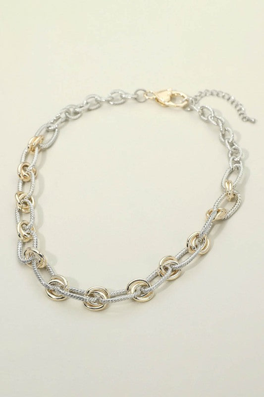 Elevate your everyday style with the Peonie Necklace, a playful twist on classic elegance. This 17" + 2" adjustable chain features textured rope-style oval links beautifully contrasted with polished knot connectors, creating a dynamic mix of matte and shine. The petite 0.4" pendant makes it perfect for solo wear or layering with your favorite pieces. Crafted with 14K gold plating and a luxe two-tone finish, this versatile statement necklace brings modern sophistication to any outfit—whether you're dressing up or keeping it casual.