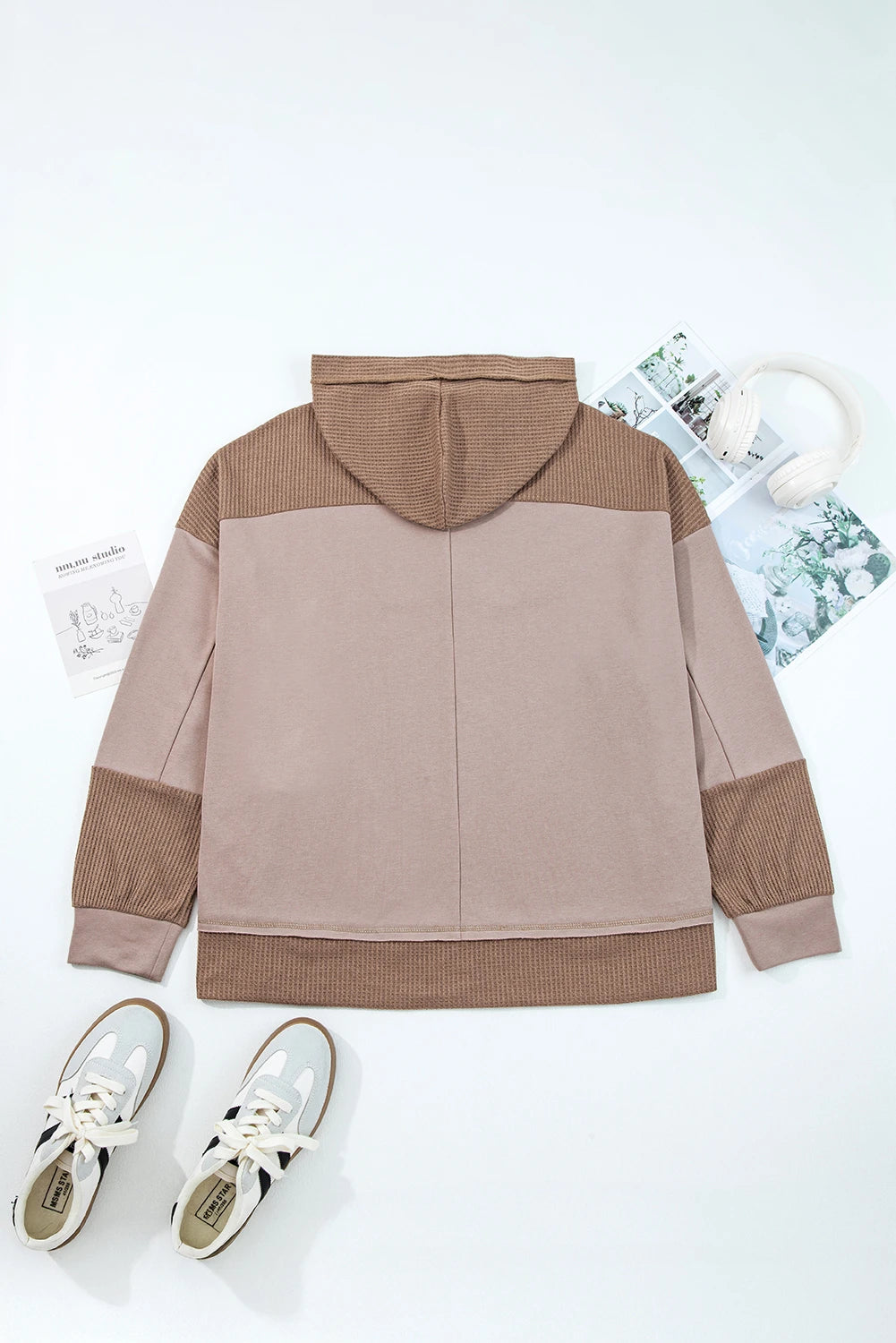Elevate your casual look with the Orion Waffle Hoodie, featuring a fun patchwork design in cozy waffle knit fabric. This playful pullover brings retro vibes with its mineral wash and raw seams, making every wear a stylish statement. Complete with roomy pockets, it’s perfect for keeping hands warm or stashing essentials while standing out effortlessly.