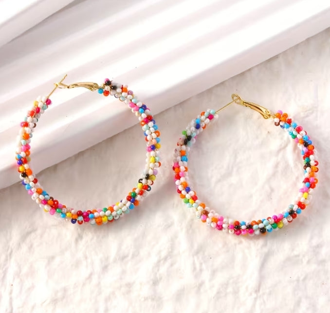 The Right Time Earrings feature vibrant, handmade glass beads that bring bohemian flair to any wardrobe. Each pair showcases a burst of colors, perfect for adding personality and playful charm to your everyday look. Whether you're dressing up or keeping it casual, these boho-inspired earrings are a versatile accessory that celebrates artisanal craftsmanship and unique style.