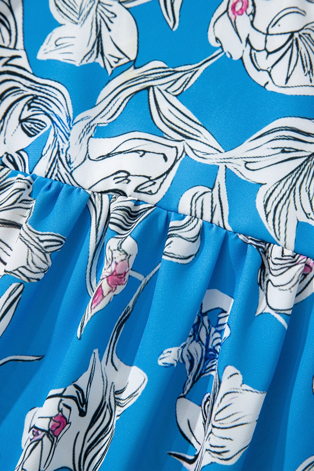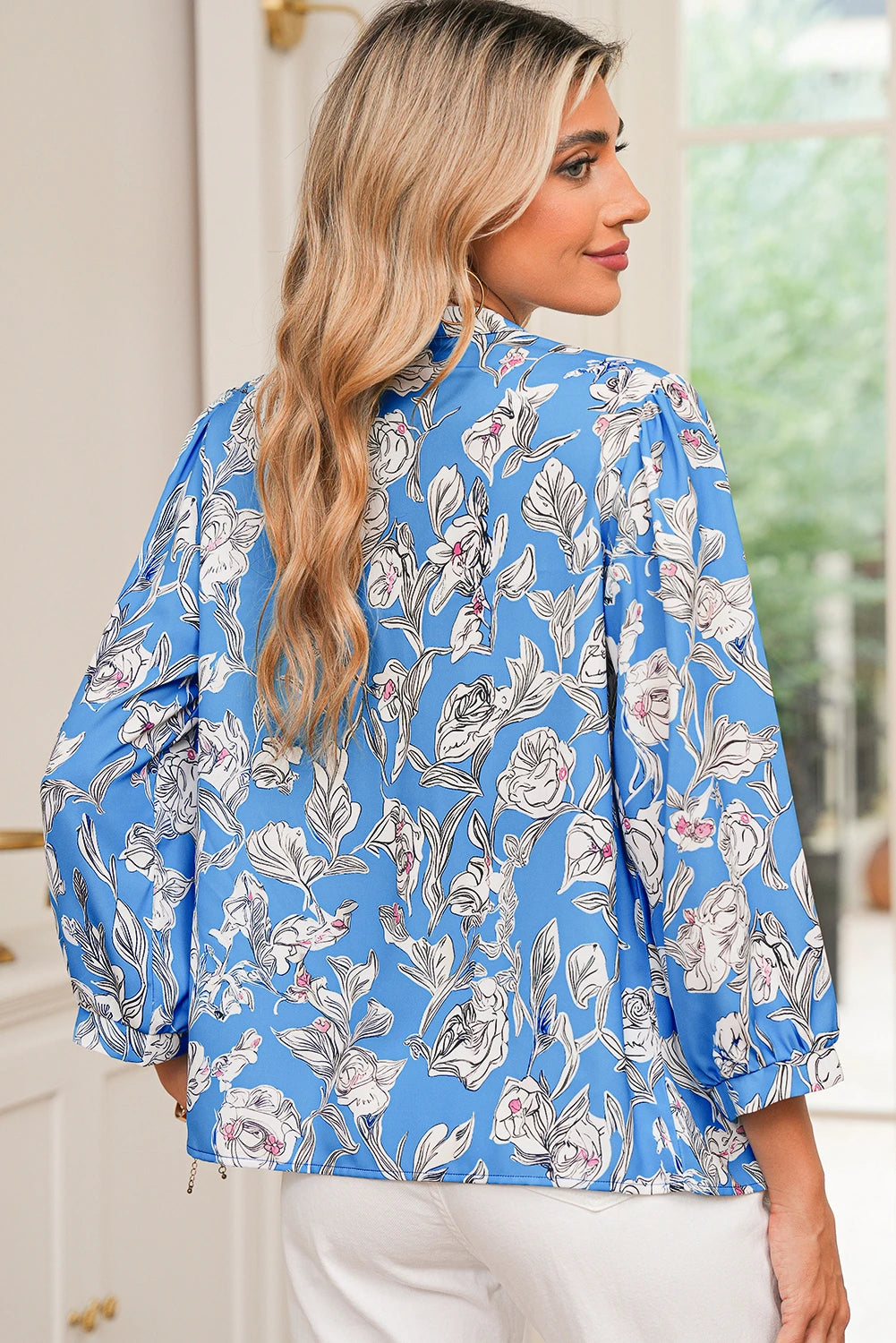 Embrace effortless charm with the Harlan Wyatt Floral Blouse in sky blue. Its vintage floral print and flattering V-neckline bring a playful touch to your wardrobe, while the bubble sleeves add a fun, flirty vibe. Crafted from soft, breathable fabric, it keeps you comfy all day long. Perfect for mixing and matching from casual days to lively evenings!