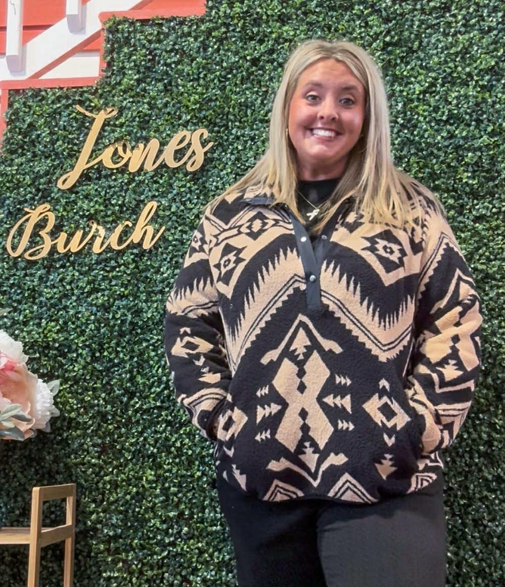 Meet your new go-to layering piece! The Gia Pullover combines southwestern flair with cozy comfort in a plus-size fit that celebrates your curves. Featuring a striking Aztec pattern and a charming half-button collar, this plush sweatshirt delivers warmth without the bulk. Perfect for casual days when you want style that feels as good as it looks—throw it on over your favorite tee and you're ready to take on the world in effortless style.