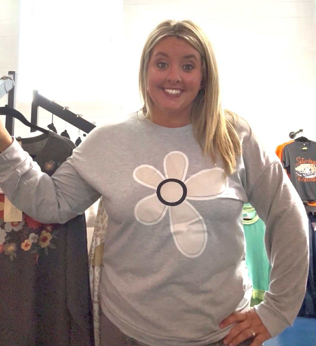 Embrace your style with this adorable All The Fun Sweatshirt, designed for curvy figures with a flattering fit. Featuring a charming flower pattern that brings joy to your everyday wardrobe, this cozy piece combines comfort with personality. The classic round neckline and long sleeves make it perfect for layering or wearing solo. Whether you're running errands or relaxing at home, this sweatshirt delivers effortless style with a touch of whimsy that makes getting dressed genuinely fun.