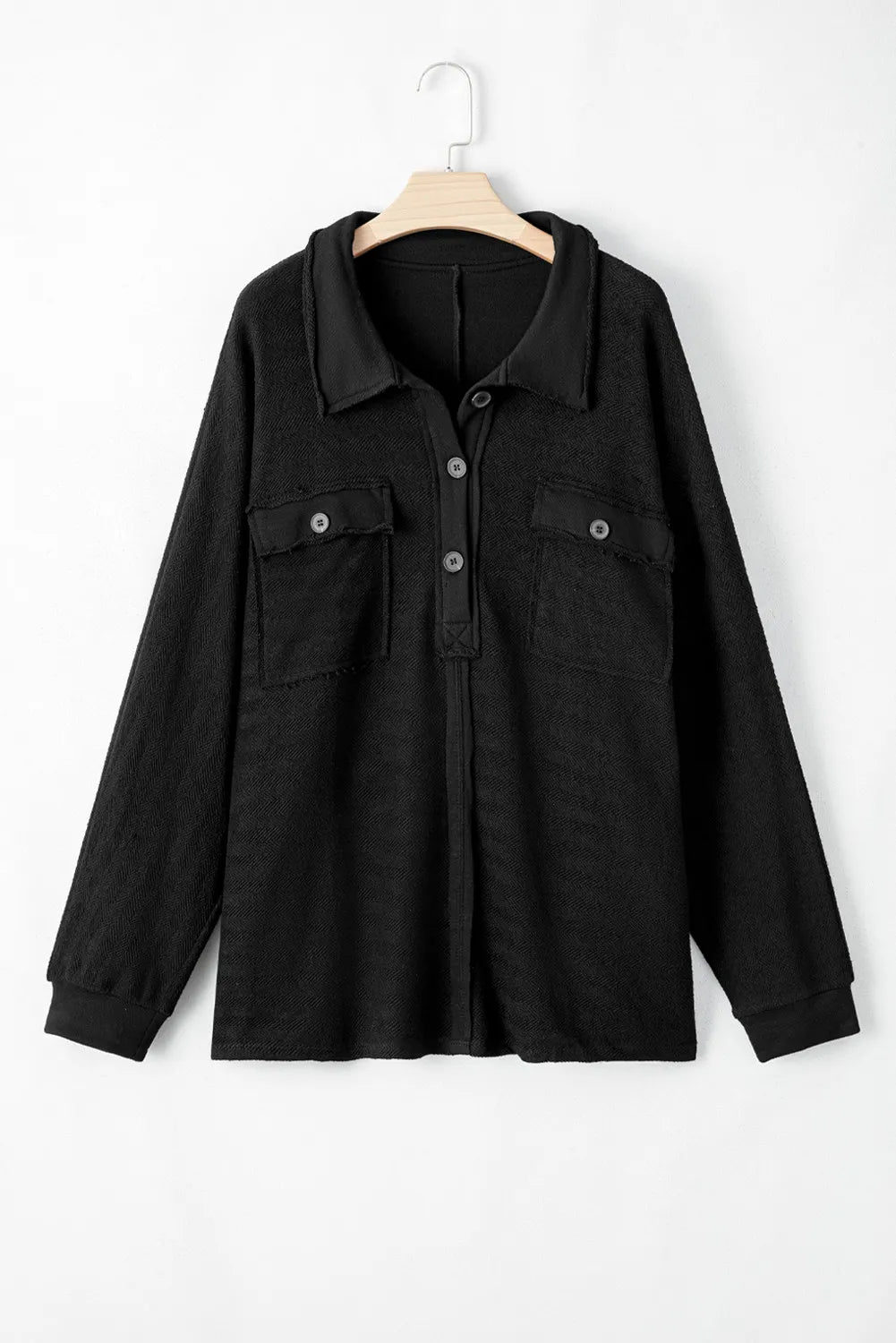 Effortless elegance meets everyday comfort in the Della Flap Pocket Henley Top Curvy. This versatile solid-color essential features a buttoned neckline for customizable styling and a classic turn-down collar that transitions seamlessly from casual to semi-formal settings. Practical flap chest pockets add a trendy touch while keeping your essentials within reach. Designed for the modern curvy silhouette, this henley is your go-to piece for looking put-together without the fuss.