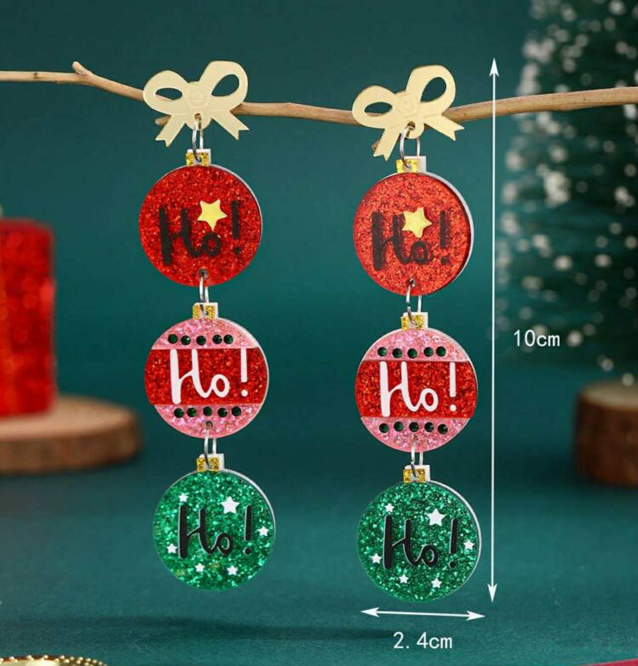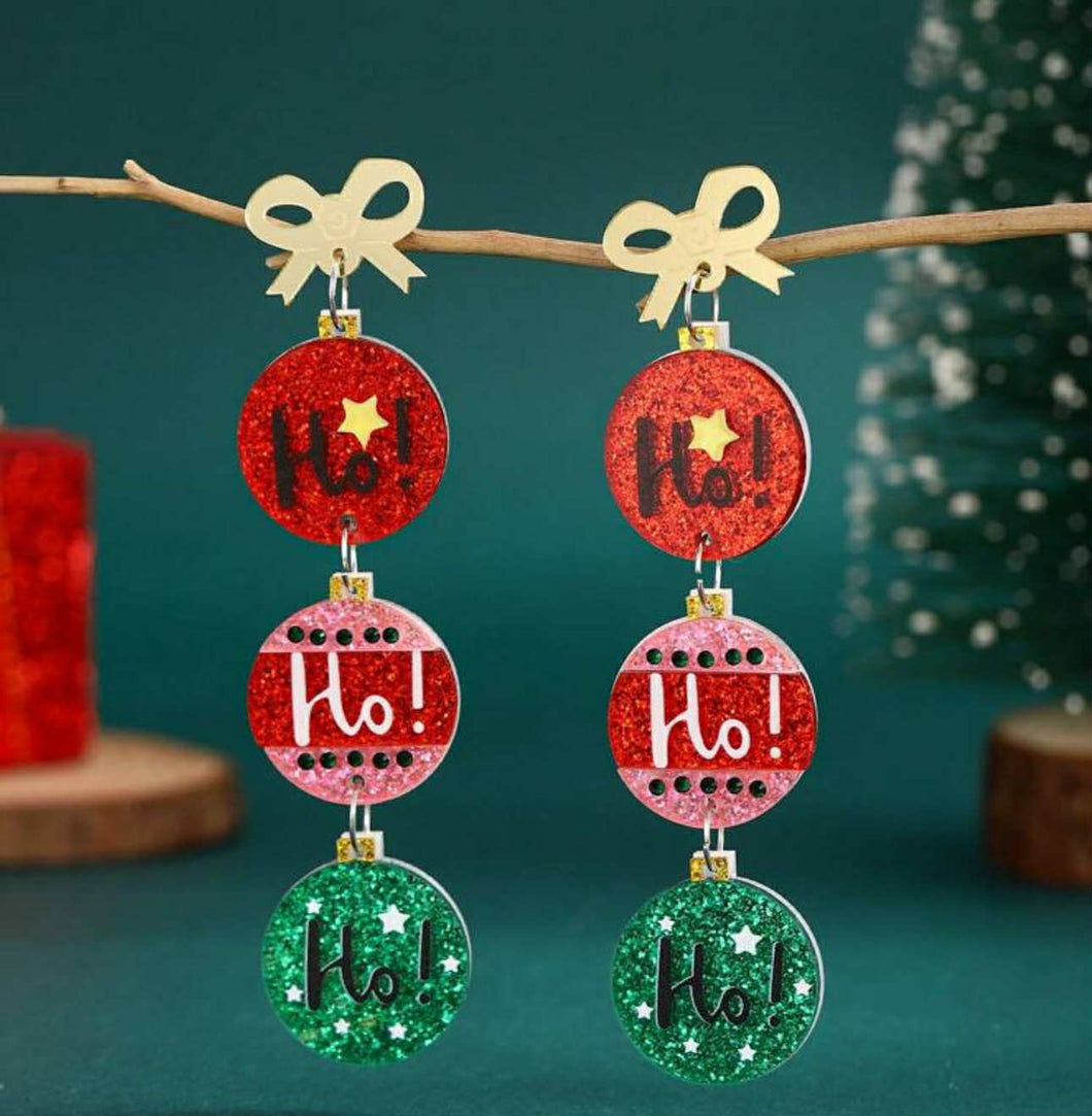 Spread holiday cheer with these delightfully festive "HO HO HO" pendant earrings! Perfect for anyone looking to add a touch of seasonal fun to their everyday style, these adorable earrings capture the magic of the holidays with playful charm. Whether you're decking the halls or just spreading smiles, these cheerful accessories are sure to bring joy and laughter wherever you go. A must-have for festive fashion lovers!