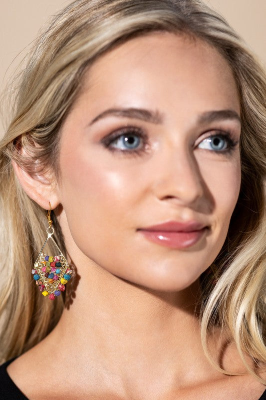 Elevate your everyday look with these stunning Hollis Diamond Drop Earrings—where artisanal craftsmanship meets sustainable style. Each pair features hand-wrapped cotton beaded accents and gleaming brass wire, creating a sophisticated yet playful aesthetic. Crafted from upcycled sari textiles, no two pairs are identical, making yours truly one-of-a-kind. Measuring 2.75" long and 1.25" wide, these lightweight beauties are lead-compliant and perfect for adding a touch of global-inspired elegance to any outfit.