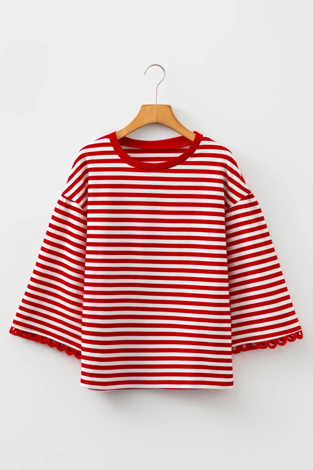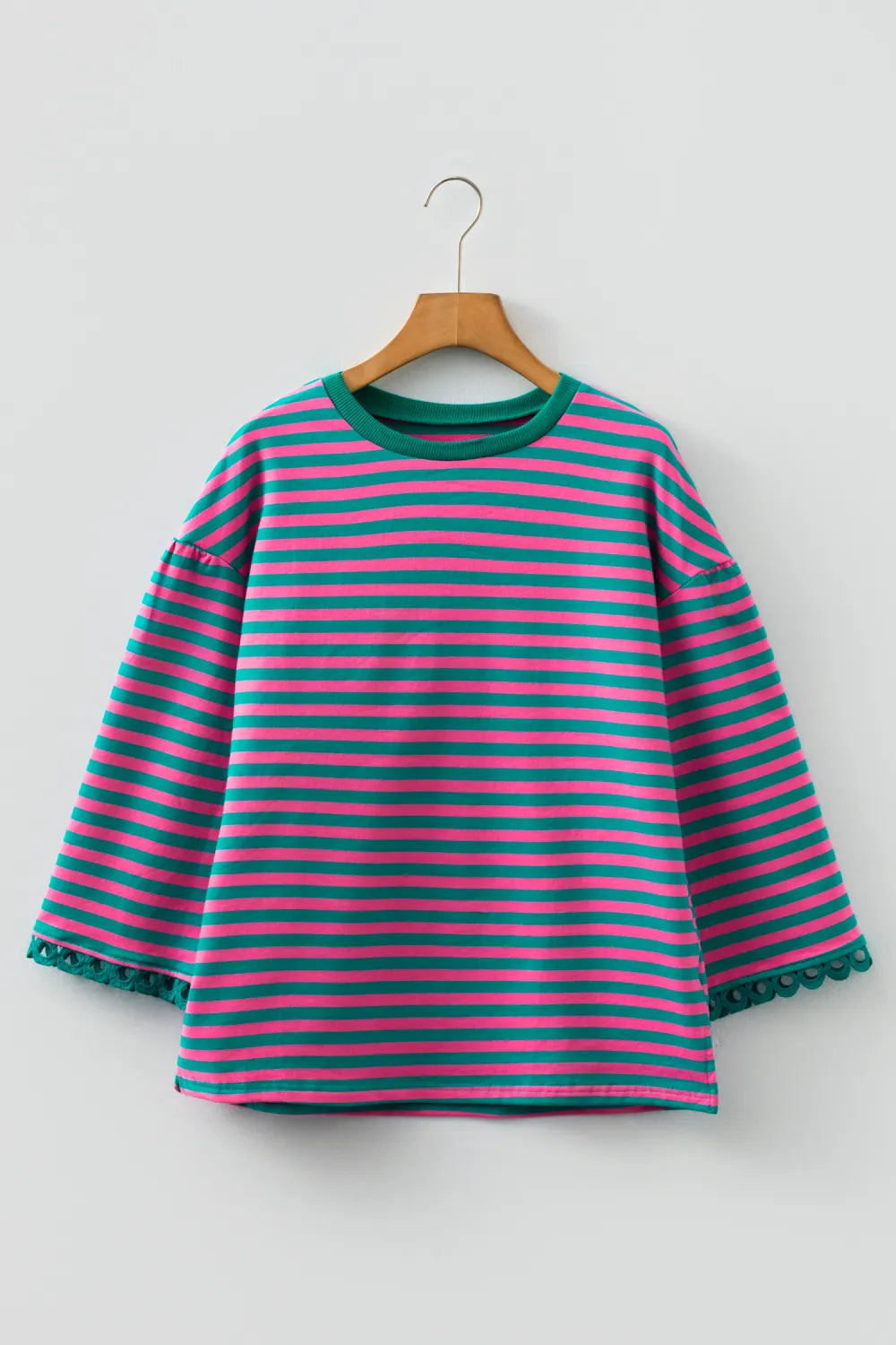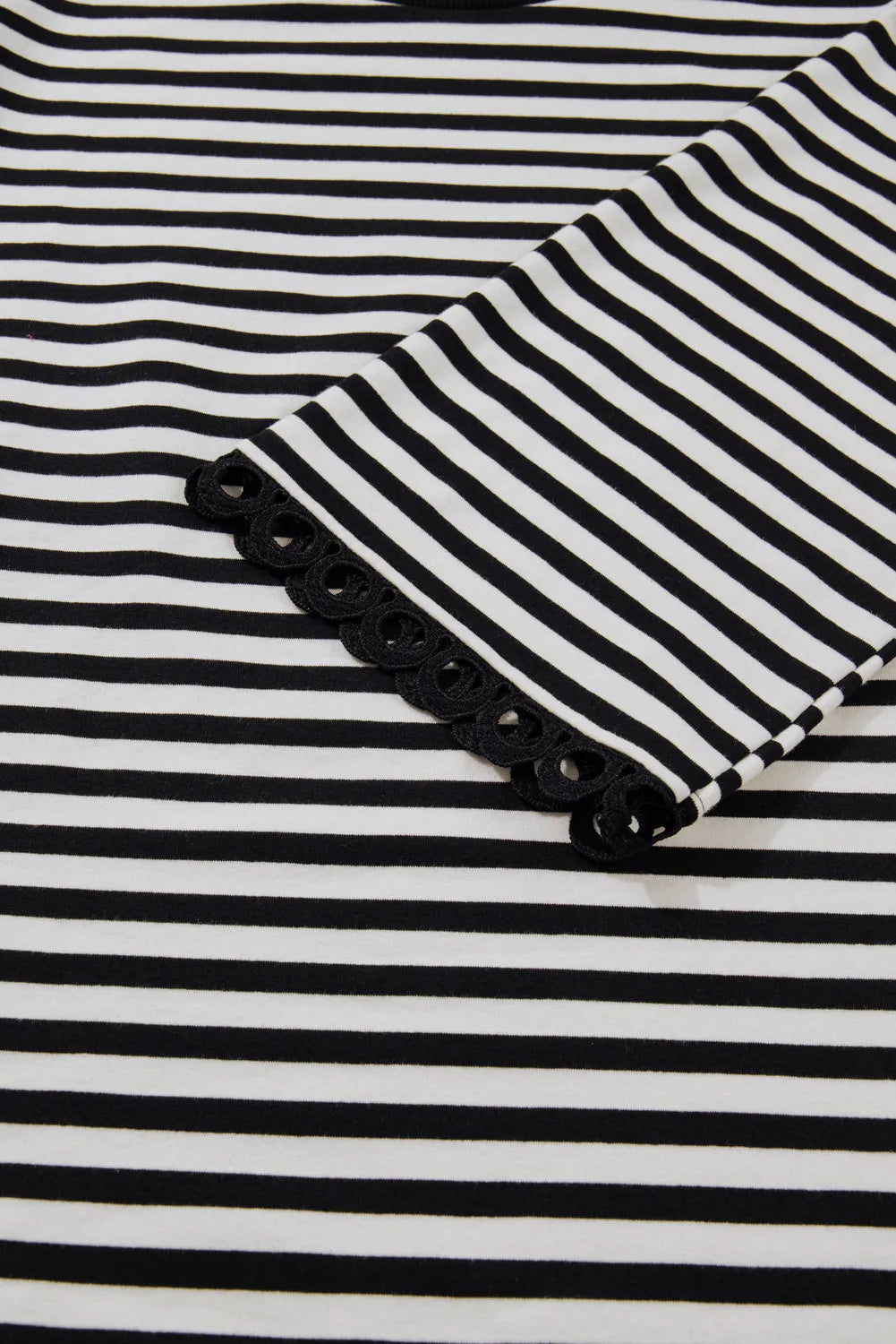 Effortless meets elegant in this striped lace trim top. The relaxed drop shoulder and bracelet sleeves create a laid-back vibe, while delicate lace detailing adds just the right touch of sophistication. A loose fit and subtle side slits keep things breezy and fun. Style it with your favorite jeans, a flowing skirt, or tailored pants—this versatile piece transitions seamlessly from casual coffee runs to weekend adventures.