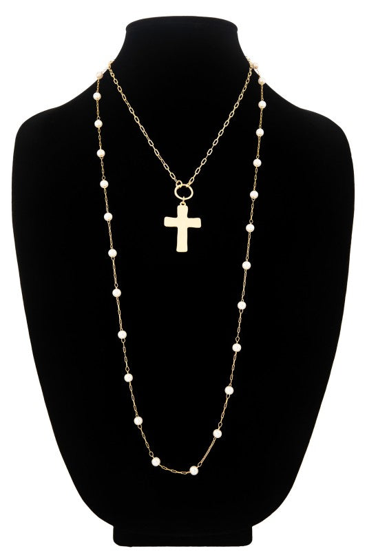 Layer on the elegance with the Wyndom Pearl and Cross Necklace! This stunning multi-chain design features lustrous pearl accents and a delicate cross pendant that catches the light beautifully. Crafted from durable iron and zinc alloy with acrylic pearl details, it's nickel and lead compliant for worry-free wear. The adjustable length—approximately 19" with a 3" extender—lets you customize your look for any occasion. Whether you're dressing up or keeping it casual, this versatile piece adds just the right touch of sophistication and spiritual flair to your everyday style.